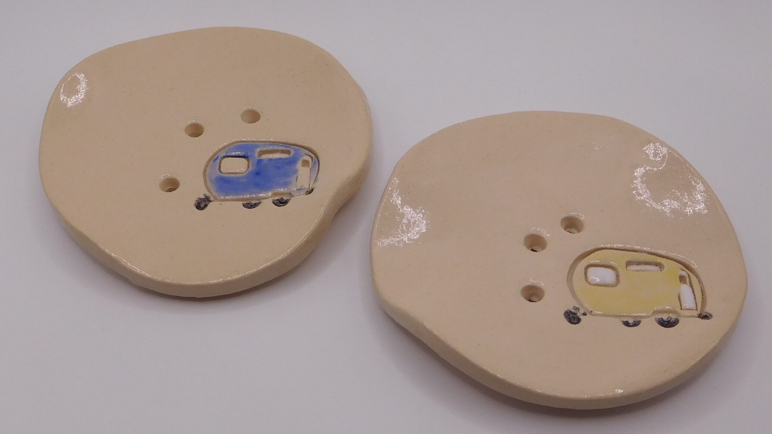 89,00 kr Välj alternativ Den här produkten har flera varianter. De olika alternativen kan väljas på produktsidanHandgetöpferte Seifenschale rund ”Wohnwagen” – jedes Stück ein Unikat