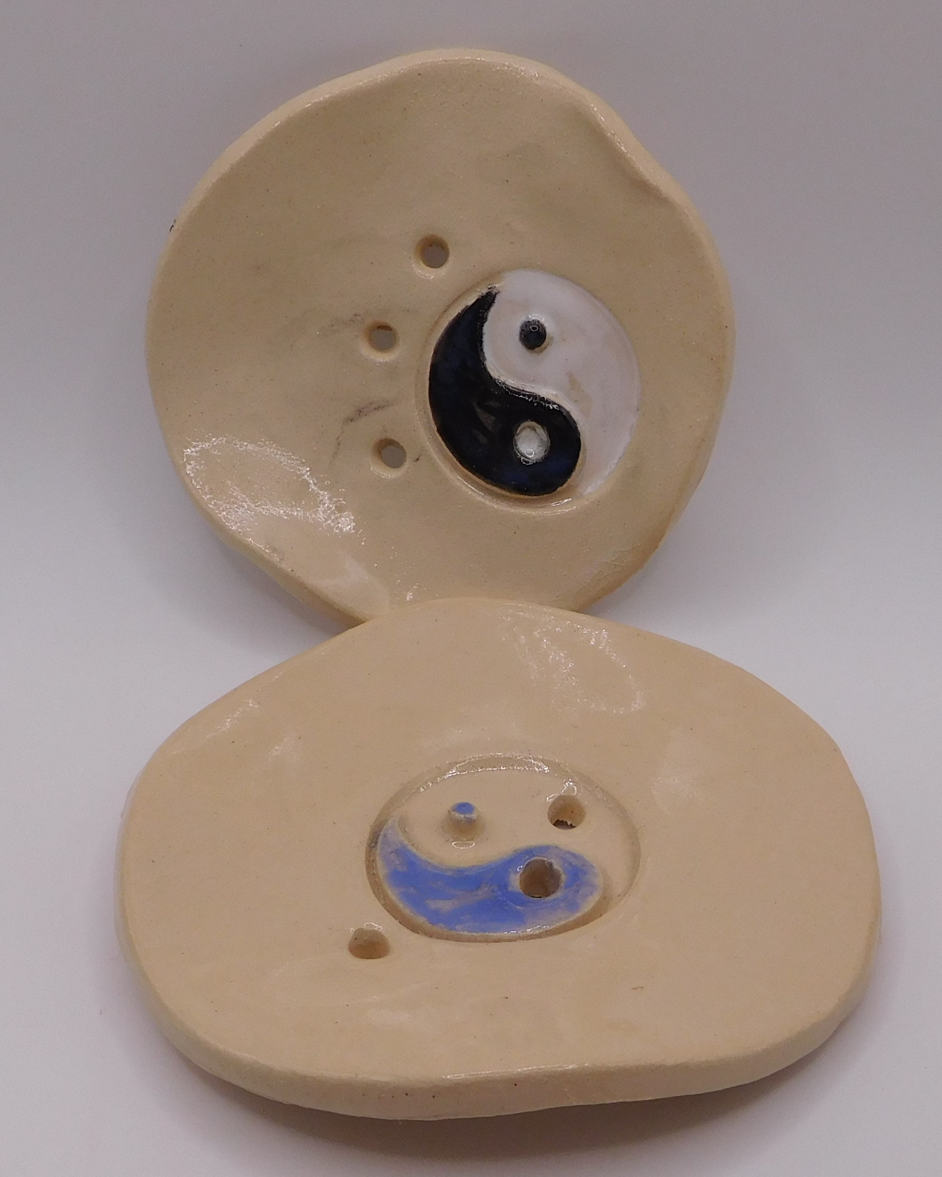 Handgetöpferte Seifenschale rund ”Yin-und-Yang” – jedes Stück ein Unikat